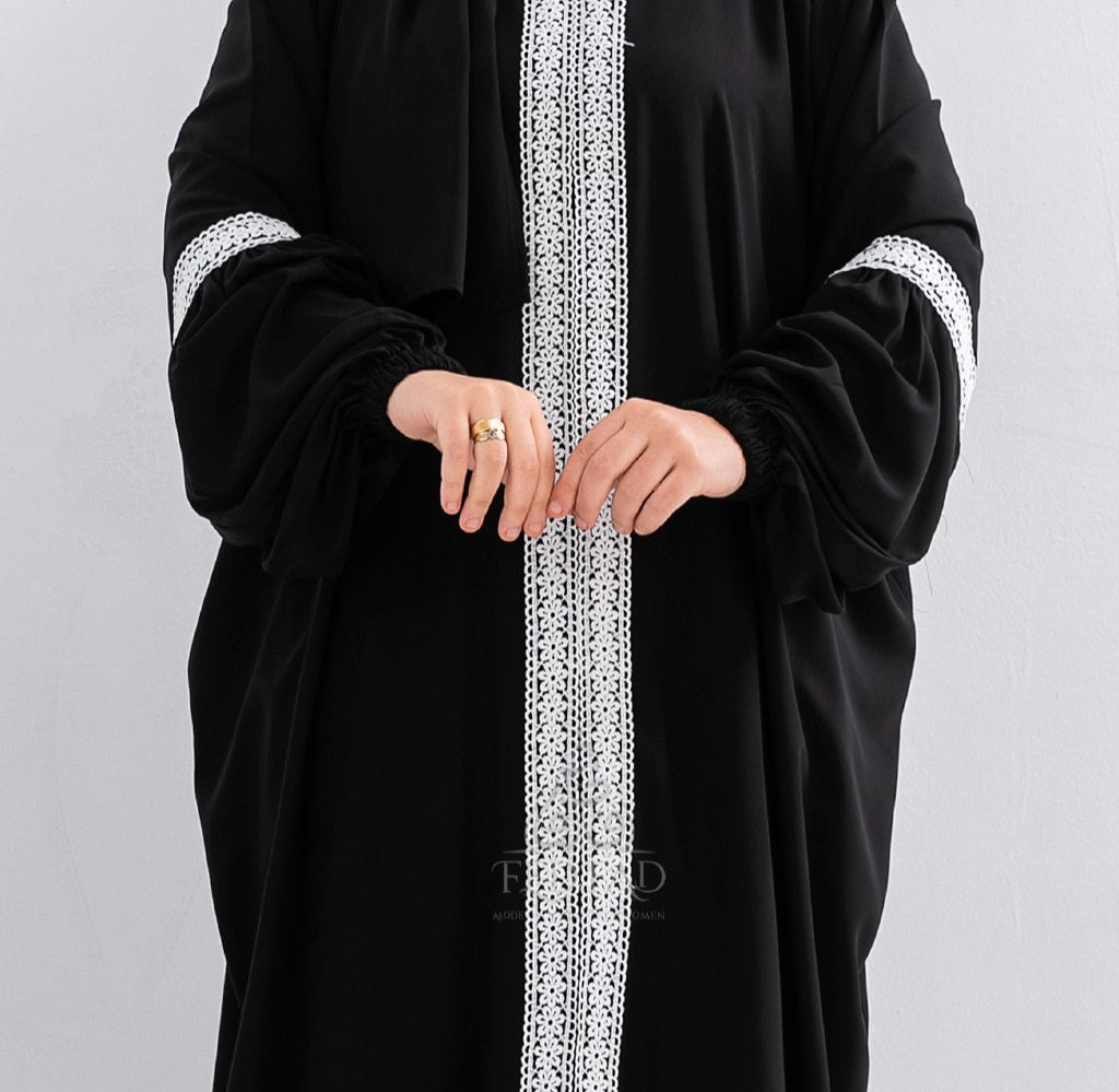 Made from the finest quality crepe fabric for a comfortable experience during your prayers or everyday modest wear. This abaya features an attached hijab for easy wear. The front zipper makes it easy to wear and adjust as per your comfort.